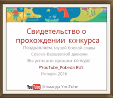 • Всероссийский фестиваль «Мой День Победы». Конкурс «Из первых уст о войне». 1-е место в номинации «Видеоинтервью», 2 место в номинации «Видеорепортаж».
